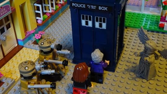 The minifigures are a mixed bag, though. Matt Smith’s Doctor is the obvious standout as not only is he the spit of Eleven, but he also comes complete with a sonic screwdriver and fez. The latter doesn’t really work on his head, though, as it makes him look bald and leaves him with his alternative-expression face showing on the back of his head. This is especially frustrating as a custom-moulded composite hair and hat piece (as seen on many of the recent Disney and LEGO Batman Movie minifigures, for instance) could have remedied this. Peter Capaldi’s Doctor is less recognisable, clad as he is in an awful shade of purple (I’d have preferred him in a dark hoodie with a guitar), and whilst Clara’s outfit is convincing, her hairpiece is anything but. The Weeping Angel, however, is sublime in its terrifying simplicity, and the Daleks are nothing short of perfection. I’d had reservations about their design before I’d built them as I’d thought that a custom mould would have been in order for creations of their calibre, but that would have been at the expense of the sheer joy that comes with putting a couple of Daleks together out of nothing but existing bricks.