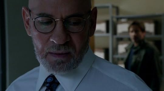 Of course, that’s not to say that “My Struggle” isn’t a gripping drama, or even good X-Files episode. Visually, the show has never done a better job of portraying alien bodies and ships – its pre-title montage alone is peppered with breathtaking UFO sightings and engagements, and that’s before we even get to the meat of the matter and the episode’s fiery resolution. More importantly though, the performances of the story’s two supporting stars, and particularly the returning regulars, are unreservedly excellent, Carter’s script beautifully building upon the emotional turmoil of I Want to Believe and thus giving the cast some incredible material to work with. Whilst Gillian Anderson’s ineradicable good looks belie the hell that her character has been through since we last saw her, David Duchovny’s Mulder is most definitely looking weathered. Unshaven and unkempt, the former agent’s depression and obsession have driven a wedge between him and his former partner - a wedge that this episode really drives in through the pair’s dealings with TV host and wannabe whistleblower, Tad O’Malley, before slowly and painfully pulling it out.