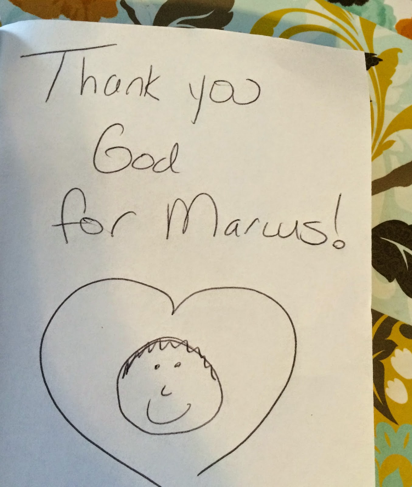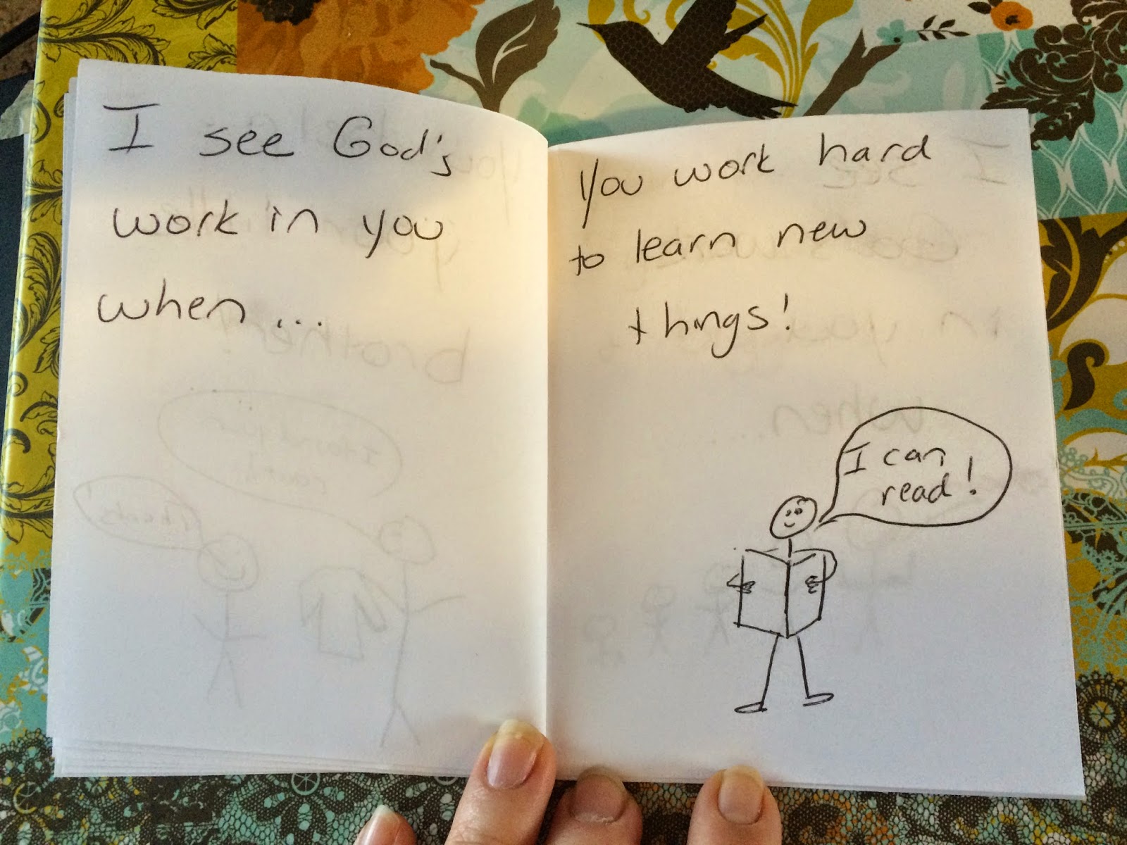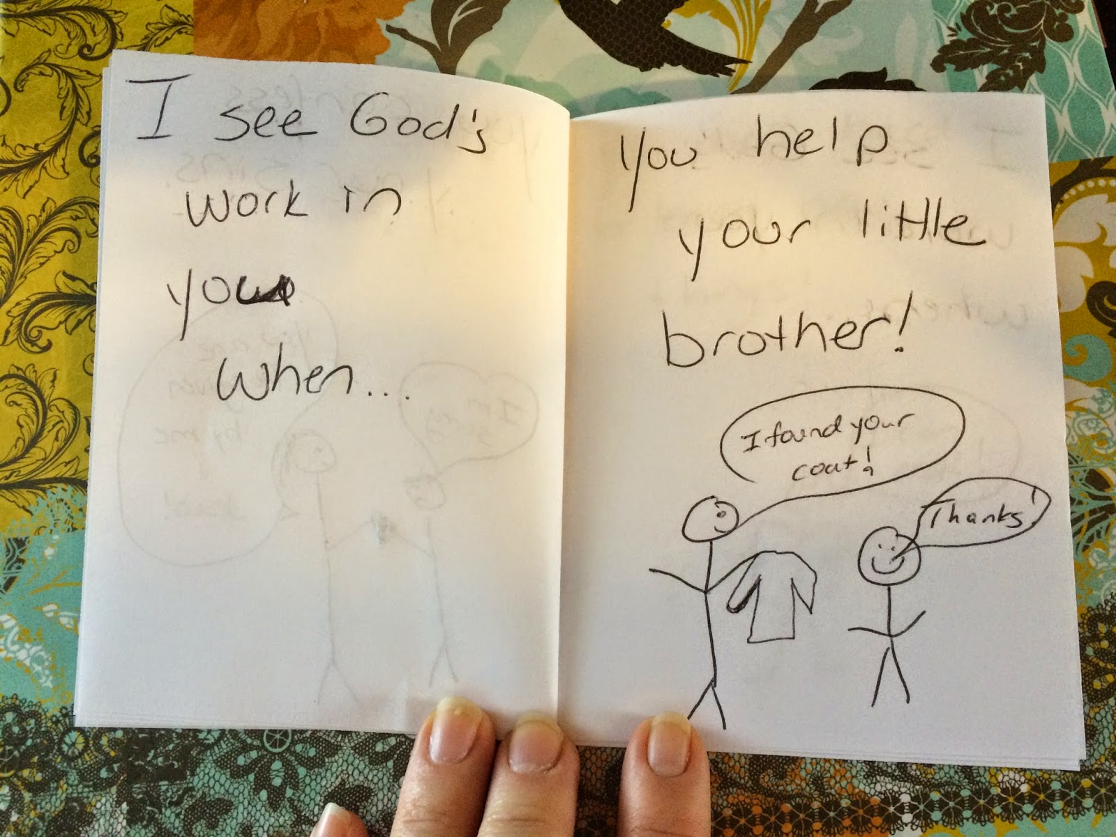 I thought you might be inspired by this idea as well.And to help you overcome your perfectionism, I thought I'd share with you my perfectly imperfect example! I wrote this for my son last week, and despite the stick figures and the messy handwriting, he took it very much to heart.