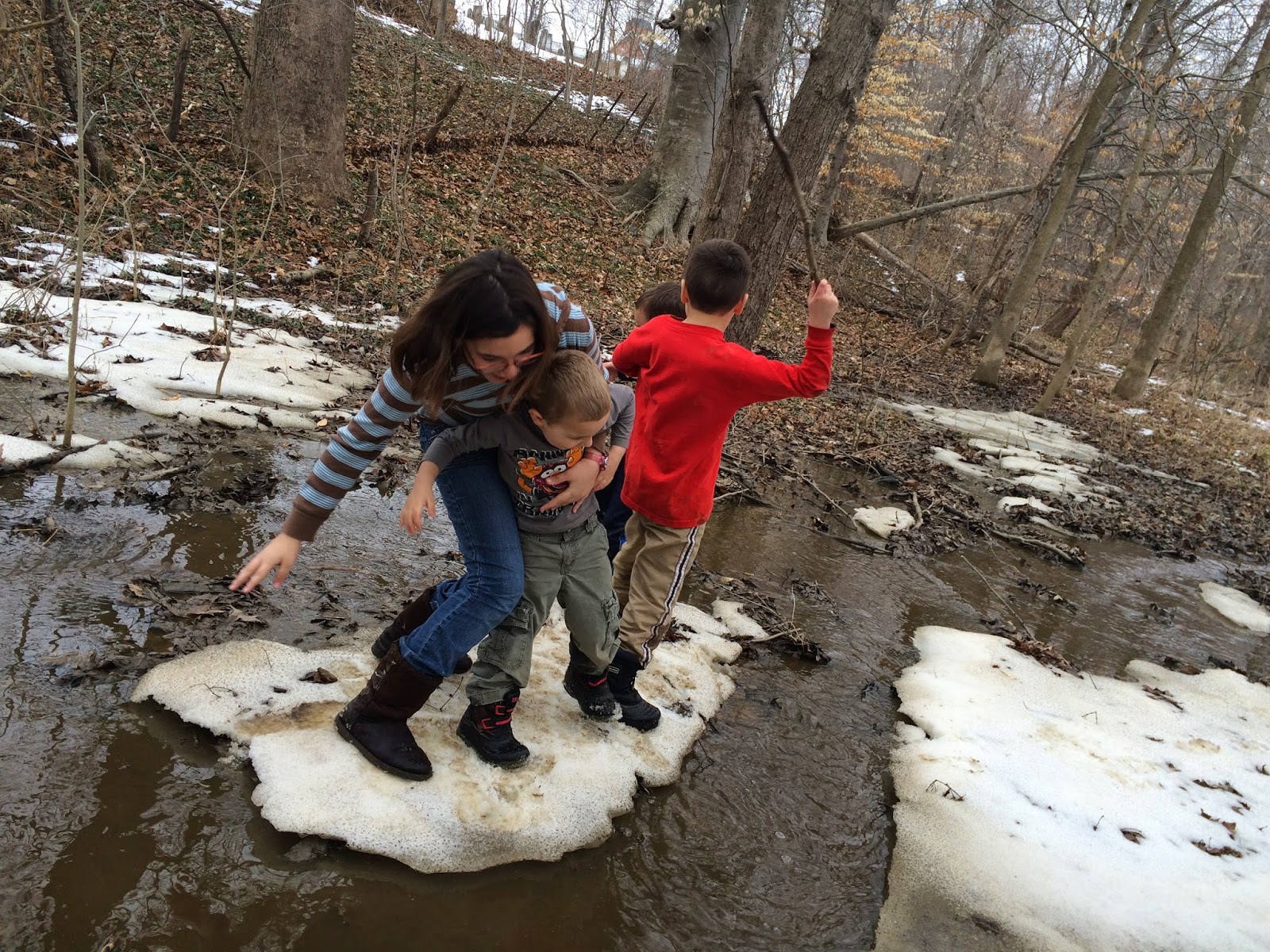 Bare hands picked up snow and made mini snowmenThen smashed them with boots and then did it again.They squealed and they yelled until mom said to stop itAnd Little One put his cold hand in in his pocketWhere he placed, oh so gently, his friend “woolly bear.”And the older ones taunted and shouted out dares“I dare you to jump!” “Bet I can!” “No you can't!Then “Mommy there's mud on my shirt and my pants!”“The laundry is worth it,” I said with a laugh,“As soon as we’re home I’ll put you in the bath.”
