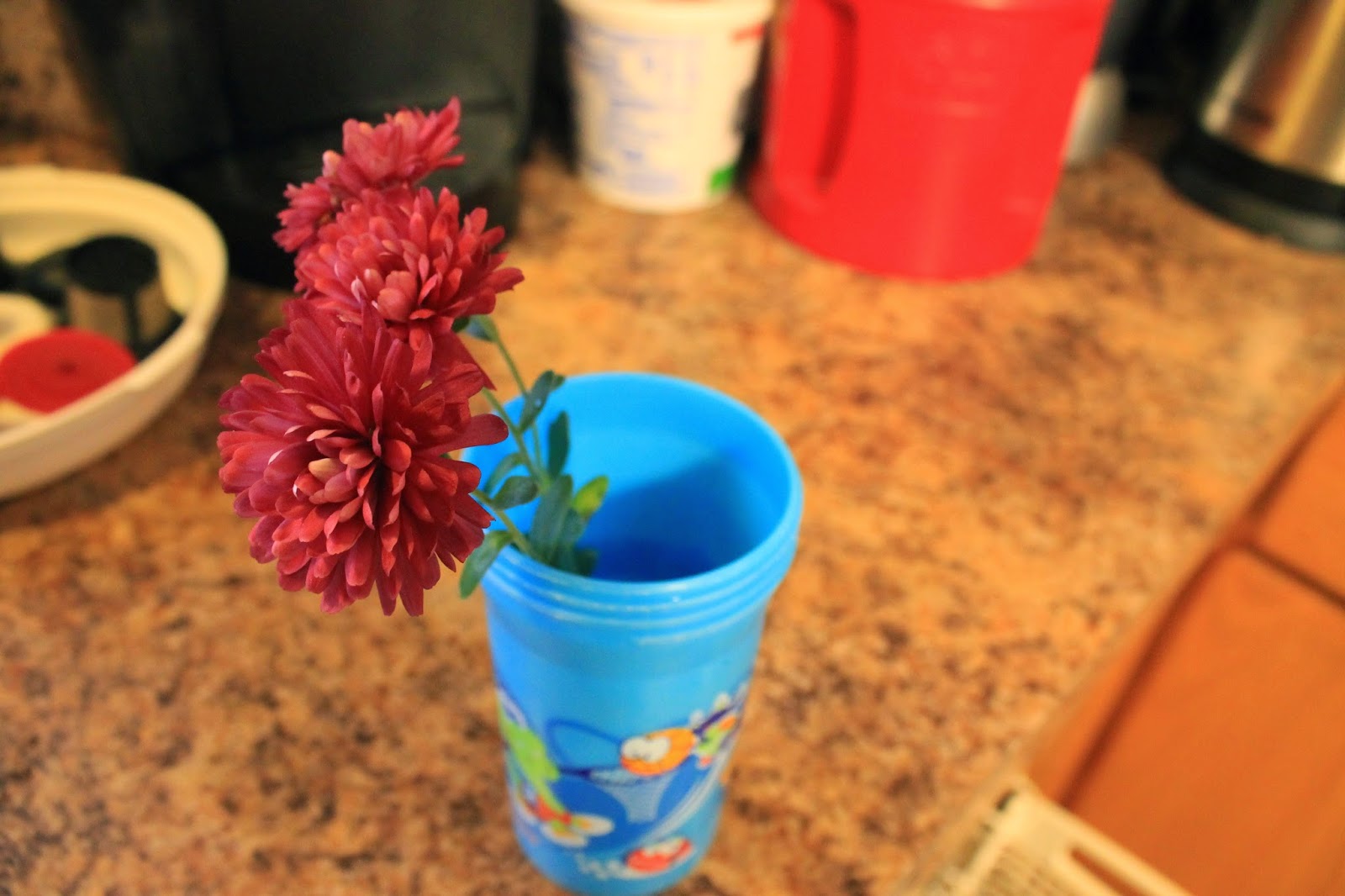 I have seen horrible things growing in sippy cups in my days, but this time, beauty, put there by a child who not so long ago drank out of the cup, and clung to my hip, and took everything all the time. That child is learning how to give, how to notice, how to help others notice.