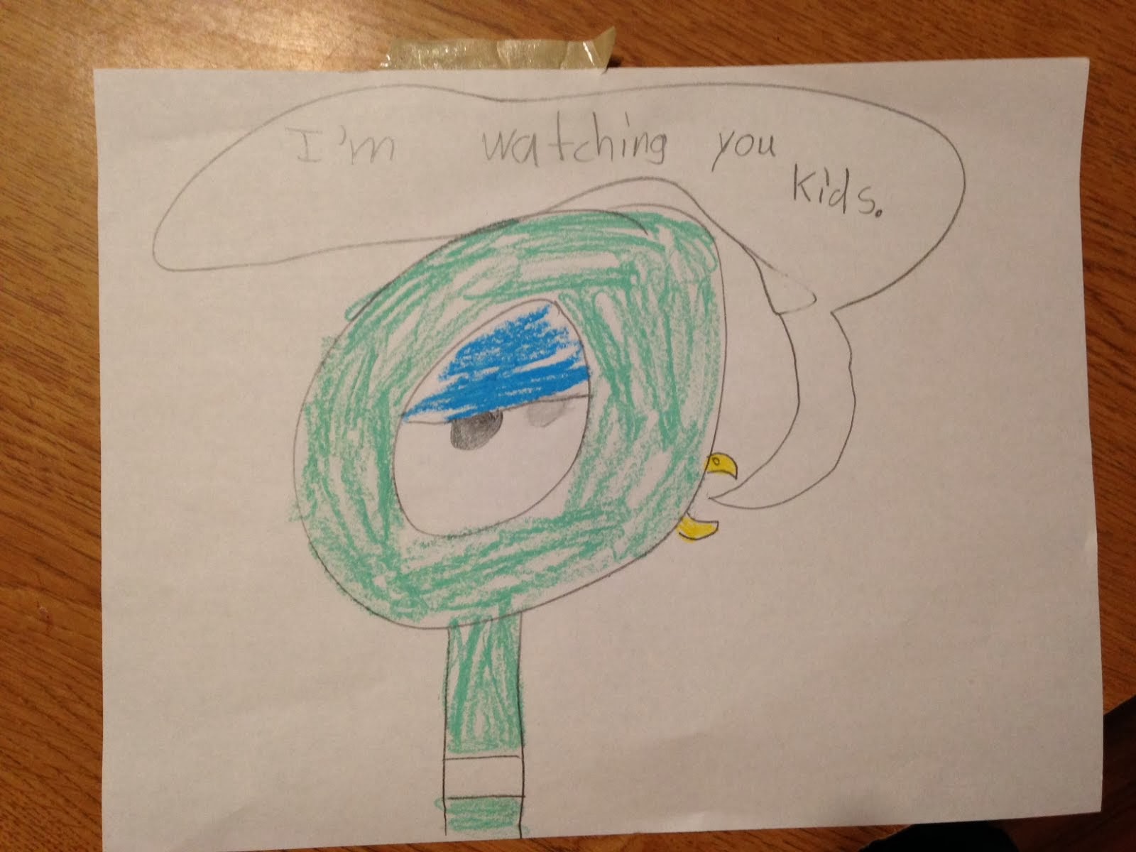 And Seth was irritated with the kids playing in the hot tub, so he drew this and hung it up in the window where they could see it.