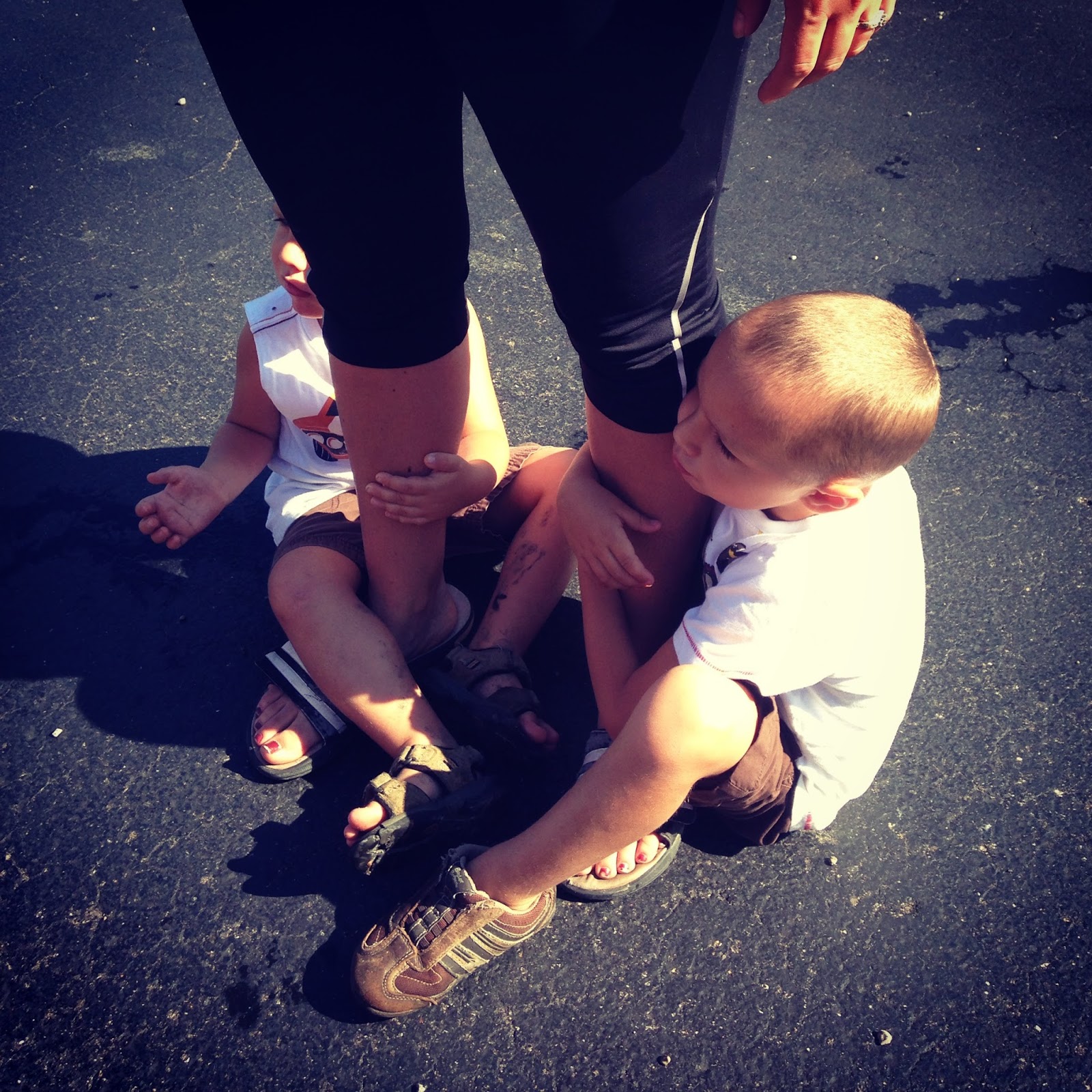 Our days are full of simple joys: collecting bugs, watching clouds, discovering their little shadows on the black top. I am the mommy, the manager, the shadow cleaning up after them and trying to stay ahead of them.