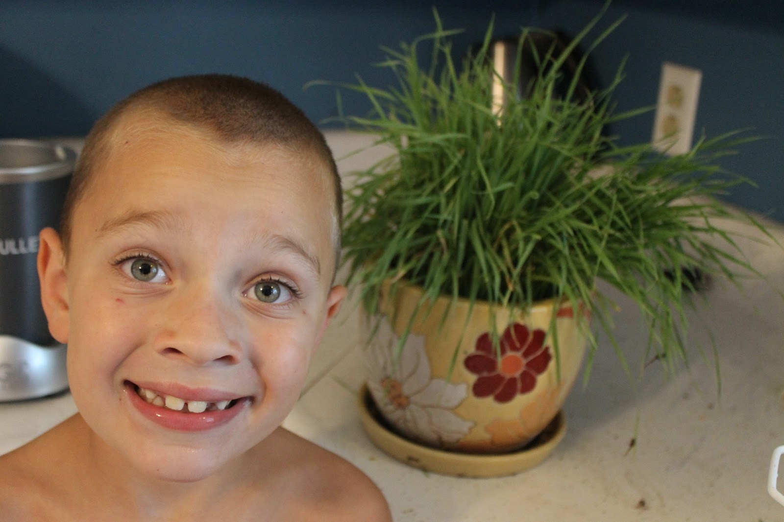After vacation, who looks more frazzled, me or my neglected wheatgrass?