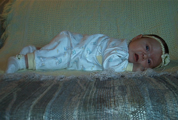 Emmalee 3 months oldBaby’s first seizureEmmalee, my oldest daughter, was 3 months old when she had her first seizure. I was assured by our local medical staff that it was simply a Febrile seizure, though she hadn't been sick beforehand, nor was she running a fever. She simply had a seizure for no apparent reason. A few days later she had another one. It was then that the doctors decided perhaps she should have an EEG and see a specialist.