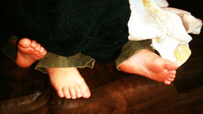 Sad feet tromped down the stairs.