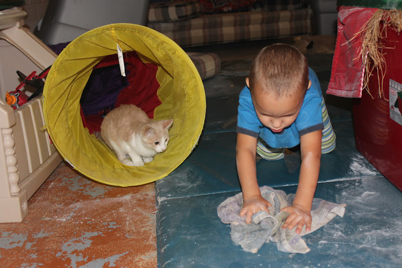 They cleaned.(Even the cat learned a few things about cleaning.)