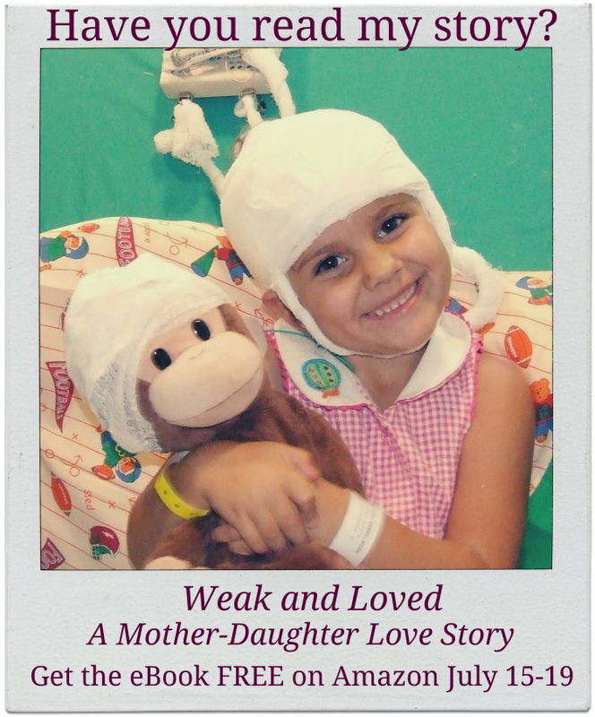 They took our smiling child to that room where the real work would begin. I could have counted that moment as my workout for the day: the wrestling I did inside myself in order to let her go. There was a part of me that wanted to grab the gurney, pull her away from those people with needles and drills, and keep her safe with me. No you may not do those awful things to my baby! But she was not safe with me either, and so I let her go. (Weak and Loved A Mother-Daughter Love Story)