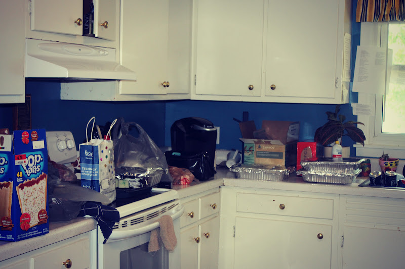 I sighed at first, seeing only the lack of work space and the things that need to be put awayand quickly, because these little people are horrible about demanding THREE meals a day.Sigh.But then...