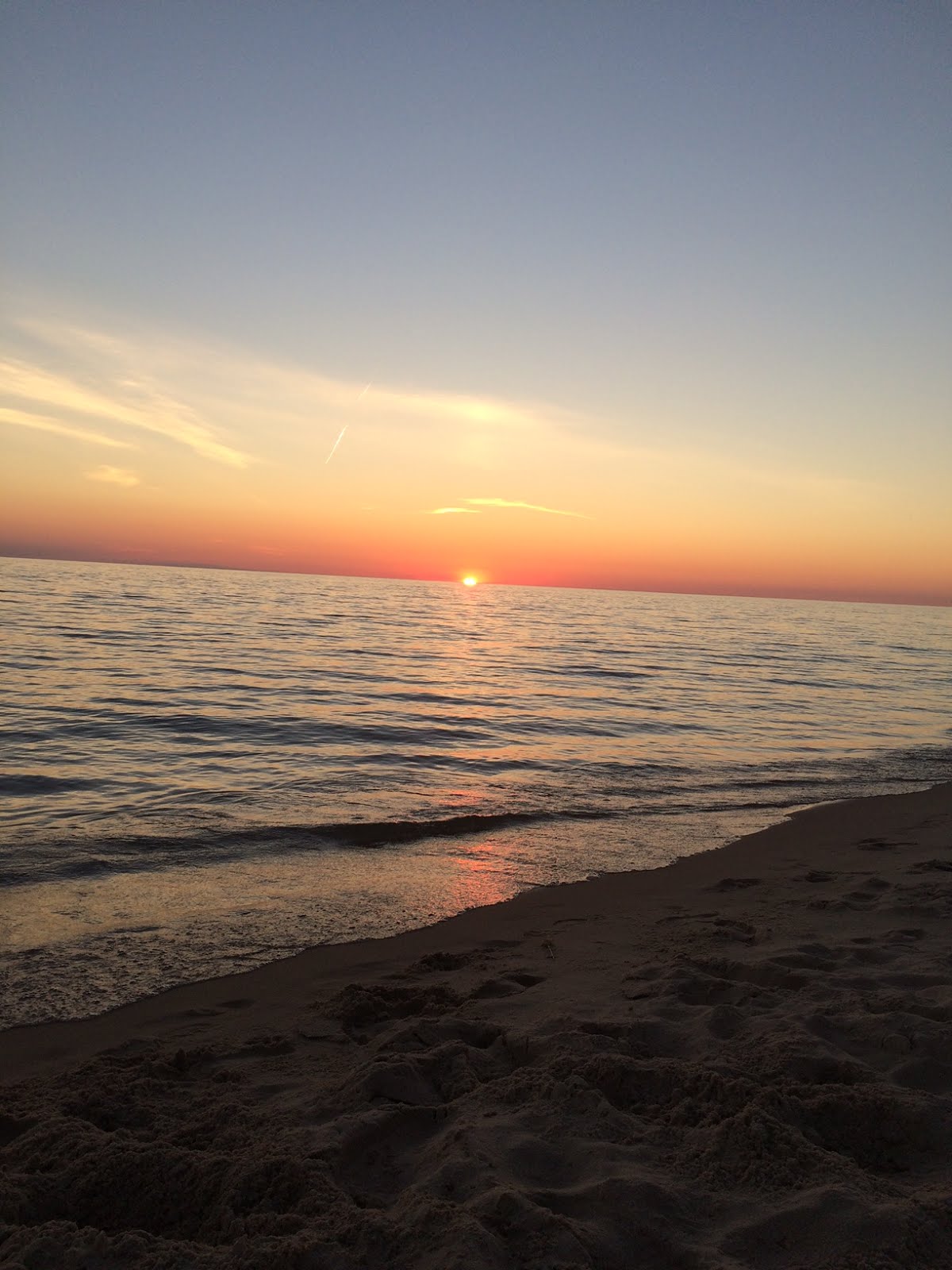 I watch my children play in Lake Michigan at sunset. The water looks like it is made of magic; the blues and pinks and golds mix like liquid ribbon. It's beauty, and it's a play place for the bodies I love best in all the world. The magic drips off their arms as they walk to me, begging me for just five more minutes. I'd like to give them an eternity, and I'd stay with them, right there, on the shores of Lake Michigan.But we are looking forward to something even better...