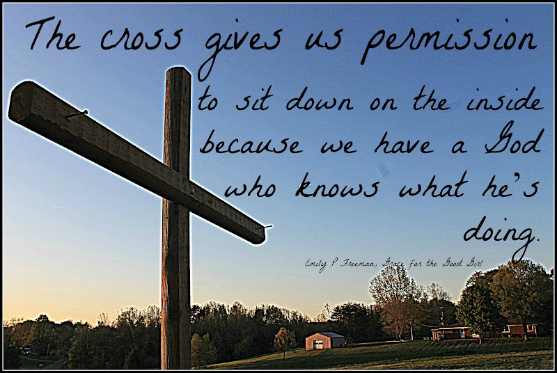 Sitting down on the inside means sitting down in the pew and opening ears and heart to the Word God sends for that day. It means sitting down in prayer before the huge task. It means sitting down at the end of the day, with the jobs left undone, the messes still tangled, and the questions unanswered, and laying it all at His feet, and receiving back from Him the gift of sleep.