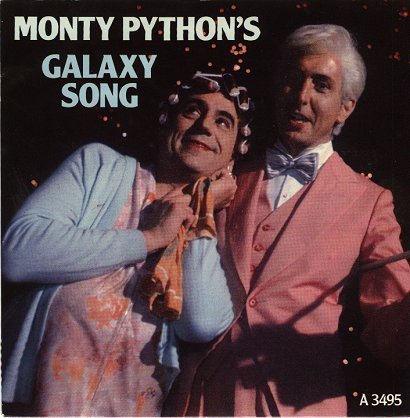Eric Idle’s Galaxy Song. “So remember, when you’re feeling very small and insecure / how amazingly unlikely is your birth / and pray that there’s intelligent life somewhere up in space / ’cause there’s bugger all down here on earth!” Ha! If those aren’t words to live by, then I don’t believe I know any.