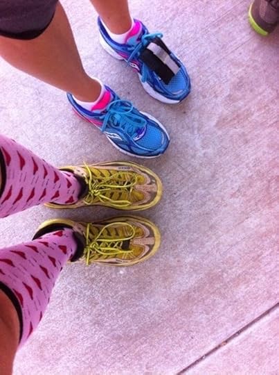 These feet (mine in blue) are ready to take me anywhereTurns out my car's battery problems most likely stem from a drain on the system. So I told them to go ahead and find the problem and fix it (otherwise I'd be replacing the stupid battery every year or so). The mechanic offered me a ride home, and I said, "No thanks, I'll just run home." And out the door I went.Two point nine miles later, I was home. The weather was perfect for a run. Sunny, mid-fifties. Did I mention it was uphill? I'm pretty sure my breathing sounded like an old transmission by the time I got near home. Fortunately, I wasn't passing anyone at that point, so I don't think I alarmed anyone.