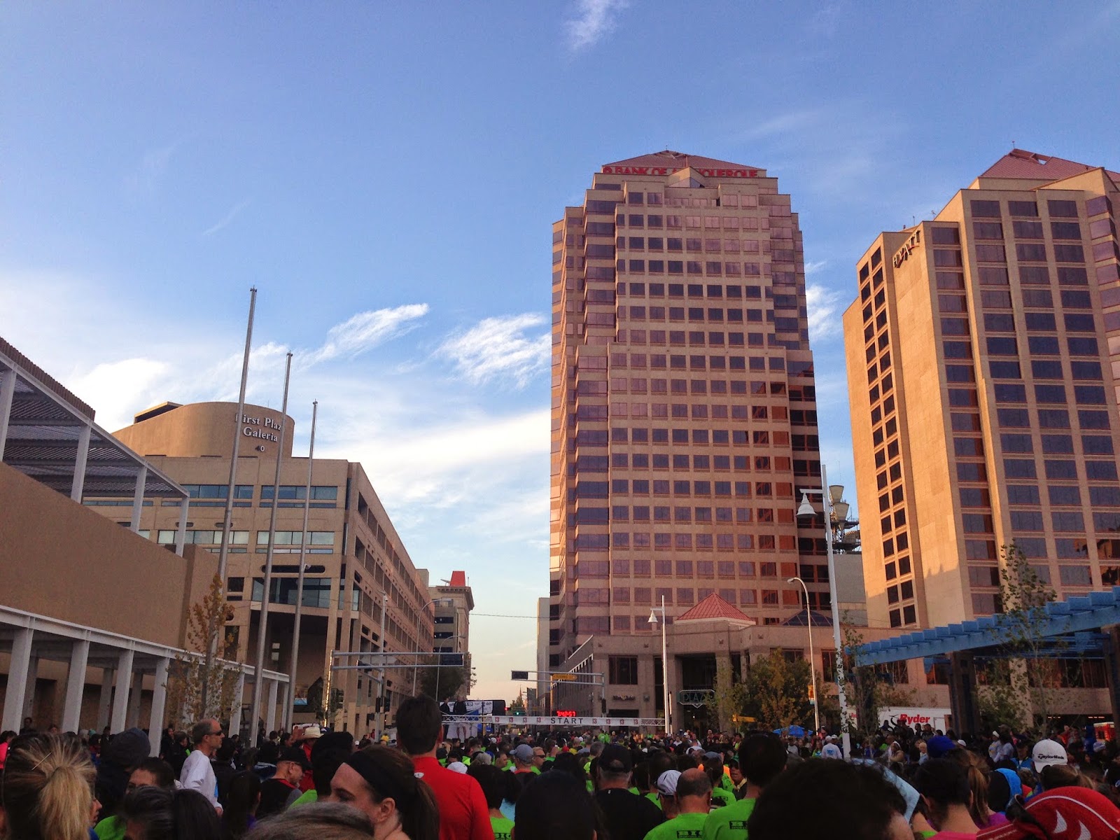 My view of the starting lineThis past Sunday I ran my first race, a 5K as part of the Duke City Marathon. When I played sports in high school, I never enjoyed running. I tried it a couple of times as an adult and hated it both times. So what changed? Why take it up now?I keep joking that I took up running as part of a mid-life crisis. I turn 40 next month, and that's the sort of landmark age that gets you thinking. What do I want out of the next ten years, twenty, forty? How do I want to feel during those years? As a physical therapist, I work with 80 year old patients who could run laps around me, and I also work with people my age who are a complete wreck. Those in the former group tend to have one thing in common: they take really good care of themselves.