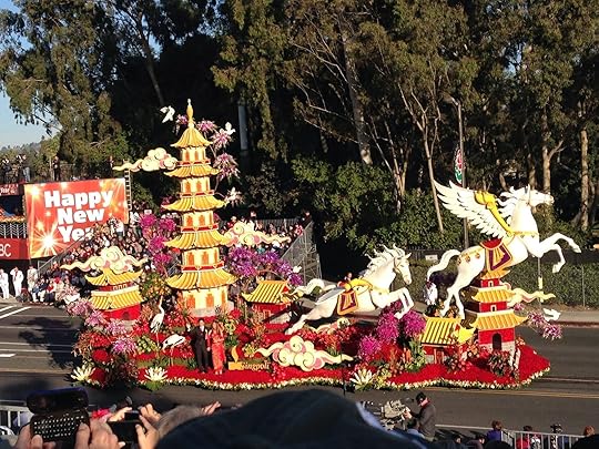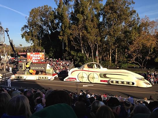 Honda's floatThe Rose Parade is one of those things you watch on TV, like the Macy's Thanksgiving Day Parade, that marks a certain day or time of year. It's one of those pageants you think you'll never witness for yourself, unless you happen to live in the area.Well, this year I had the chance to see it for myself. The family and I traveled to the L.A. area, and on January 1st, we hopped on the first of several metro trains to make our way to Pasadena for the parade. There were a million people there to watch it in person. That's not a typo. One million. That's a quarter of the entire population of New Mexico, all of them present along a five mile corridor to watch this parade. Why do so many people turn out?