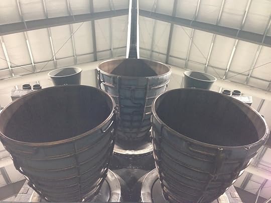 People took pictures. Lots and lots of picture. I did too, experimenting with different angles. I walked under the shuttle. I wanted to reach out and touch her, and so did other people. A really tall guy stretched up on his toes, fingers reaching, and he came short. I suppose they can't have grubby fingerprints all over it. A timeline of all the shuttles' missions filled one wall and the better part of another. One of the engines was on display. That one engine was bigger than my car.