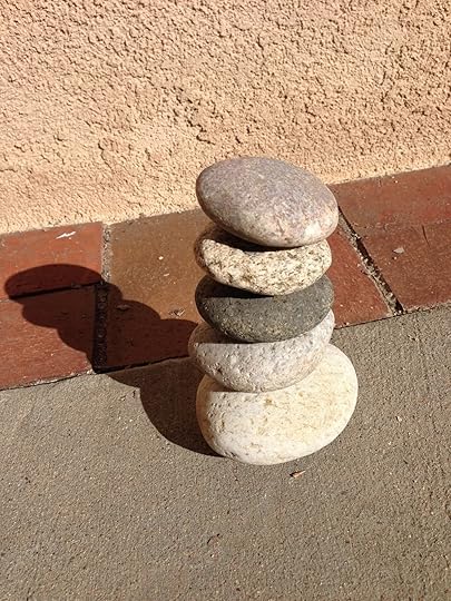 There were a couple of things I learned balancing rocks. First, it's fun. When I stacked seven, I felt like I accomplished something. And it looked pretty. When I stacked them the second time, I realized it can be hard to find the right balance. There's a lot of trial and error involved sometimes. The same is true for other activities. You have to reassess your goals and desires and see if you're meeting them on a daily, weekly, or monthly basis. And third, flexibility is key. If one approach doesn't work, try another. And another. And even another.