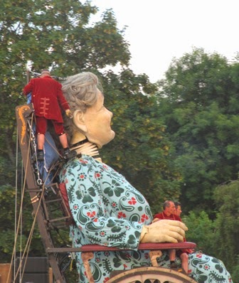On Friday night I joined thousands of people to see the Giants arrive in Newsham Park. The first thing that strikes you is the sheer size - here full grown staff members sit comfortably on the Grandmother's lap!