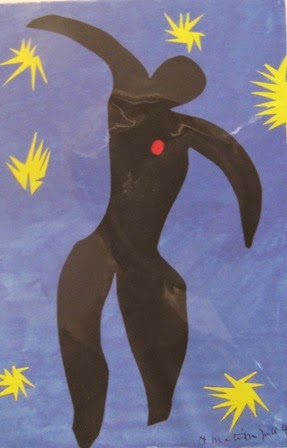 Something I didn't know was that in 1947, when he was in his late 70's, he was asked to design a stained glass window for the Dominican Chapel of the Rosary in Venice. He became so enthusiastic that he took on the total design project, even including this striking chasuble robe to be worn by the priest.Of course there were the familiar Blue Nudes, brought together of the first time, and lovely, dancing Icarus - who could not love this figure!