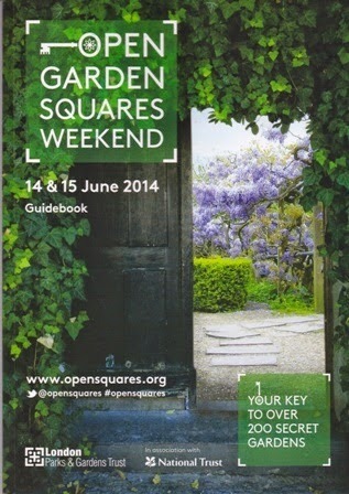I just can't believe I've only recently discovered this amazing event. Apparently for the last 20 years the London Parks & Gardens Trust have been holding an Open Gardens Squares Weekend. As anyone who has ever been to London will know, many of the more exclusive areas are built round a park-like space in the middle, which is for the private use of the residents, and they understandably guard their exclusivity - after all these properties are the most expensive in the land.However, for this one precious weekend many are open to ticket holders. The first delight was the arrival of this information-packed book containing details of all 219 gardens - in fact the amount of information was quite overwhelming.