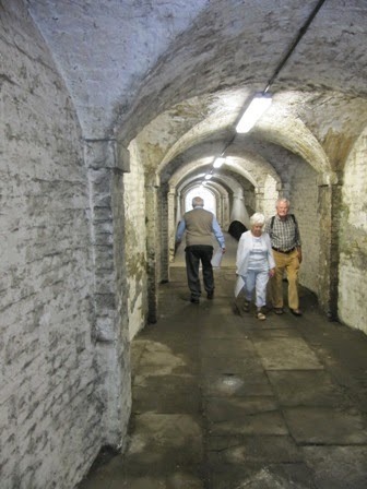 Then it was back to the farm to visit the School of Artisan Food and watch a sausage making demo. However, I think what I, and nearly everyone else, really wanted to do was to walk through one of the Duke's tunnels! The 5th Duke of Portland had a passion for tunnel-making, no-one is quite sure why, and they criss-cross the estate. Just one was open this particular weekend, and I couldn't wait to walk through The Grotto Tunnel with it's strange 'Pulhamite' walls which incorporated imitation fossils and strange petrified sea creatures. Just marvelous!