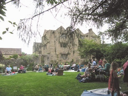 On my previous visit it had only been possible to see the garden by peering through the windows, but now it was possible to wander round this peaceful, atmospheric area, which is divided into several small areas. One of these had been set out for the children to use, and it was also the area where they told stories!We had been encouraged to bring a picnic, and live music - which was absolutely excellent - was provided. What a wonderful way to spend a summer's evening - even though I could have done with it several degrees warmer!