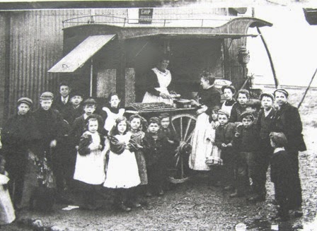 One thing that always marks the quality of a good lecture is how many people wanted to know more! One person asked if local businesses had benefited from the huge influx of workers on the railway, with Edale alone going from 336 in 1881, to nearly a thousand during the construction work. In this delightful photograph you can see eager children getting fish and chips from an enterprising van!