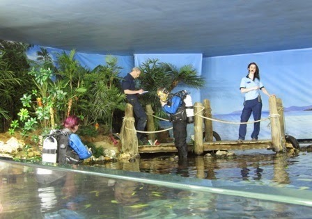 After I'd seen the penguins I wanted to go back to see the divers at work cleaning the glass and feeding the fish in the Lagoon of Light, which is a really amazing area. However, it did seem that the only way to get there was to go against the crowd, and fight my way back upstairs to this area. Then it would have been better if the amplification on the girl's mic had been better and we could have actually heard what she said, as I'm sure that would have been really interesting.By now I was ready for a much needed cuppa, but again it did seem that the only way back to the cafe in the entrance was to retrace my steps and again fight against the crowds, which did seem somewhat less than satisfactory.