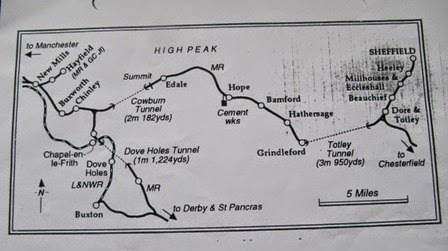 As if that wasn't enough Mr Leivers had also provided a large number of hand-outs, which he kindly said I could take and these form the basis for this blog, and all the illustrations, for which I am very grateful.Leaving Sheffield railway station going west towards Manchester there are the most marvellous tunnels! The first one, that ends near Grindleford is 3 miles 950 yards long, and seems to go on forever! Further along the track, going through the High Peak area of Derbyshire is the shorter Cowburn Tunnel, just 2 miles 182 yards long.