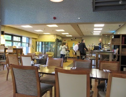 Inside there is a two-storey glass window looking out over the woodland, and other people have written on the web about watching fallow deer whilst they ate their lunch! I had to content myself with the many bird feeders just outside which were certainly being well used!I found the staff friendly and approachable, and whilst the service did seem a little slow there was so much to watch it was unimportant. I only had an omlette, but it was still a substantial meal, and the choice on the menu was impressive.