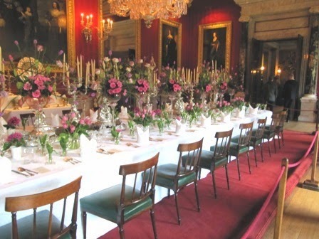I was particularly taken with this unusual combination, that used the beautiful blue and white containers all stacked on top of each other.The dining room, always a great favourite of mine, and frequently changing, this time was laid out as it was for the visit of King George V and Queen Mary in 1933. This was one of the last great dinners held at Chatsworth before the onset of the Second World War.