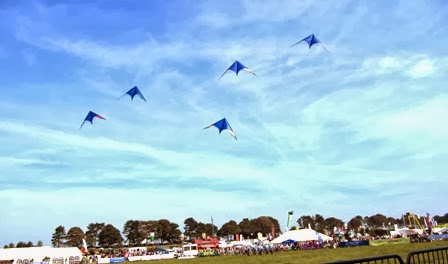 Then it was the hard decision whether to look at the vast array of trade stands, be tempted by all the food stalls, or go into the various craft and produce marquees. In the end it was the excellent address system which tempted me into the arena. There I sat in the free stands and watched entranced as 'Sky Symphony' entertained us. It was incredible, as the skilled team of gentlemen operated their synchronized kites, all to beautiful music. In this photo each kite is operated independently, yet the final result is quite breath-taking. It was so relaxing and mesmerizing, I could have sat there all day, and certainly made a point of returning in the afternoon to watch the repeat performance.