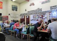 Of course there's also an excellent buffet serving a surprising wide range of fry-ups etc. (I had a very tasty sausage roll with, of course, chips! Yummy!)However, the highlight for me was watching the original turntable in action - quite amazing.