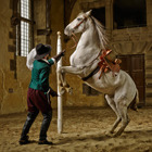 For hundreds of years the Riding School has been unused - but no more! English Heritage has restored the sand floor of this impressive building so that it looks very much like the original 17th century surface, and similar to the floors at the acclaimed Spanish Riding School located in Vienna. In addition a tier of benches, seating around 120 people, has been erected at the end of the space, and the firm Action Horses are supplying the entertainment.