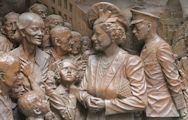 However, by far the most interesting are the two bronze reliefs situated below on either side. One shows the King and Queen on a walkabout during the Second World War. They had been urged to leave the country and move somewhere safer, but they refused. When Buckingham Palace was bombed in 1940 she is reported to have said "I'm glad we have been bombed. Now I can look the East End in the face."