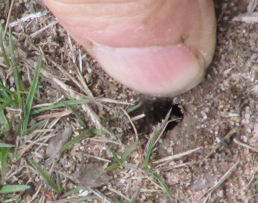 Soon we were peering into puddles and looking under heather to discover bugs, and never before had I realised how exciting round holes could be! This one could well be the exit for a solitary bee, apparently a very important bug for pollination.