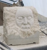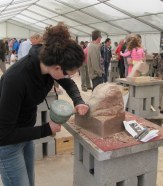 Each workstation (made of piled up breeze blocks I noticed!) was clearly labeled, and this is Liebert Benjamin carefully measuring his work. At the end of the afternoon I returned and it was absolutely fascinating to see how the works had progressed.)Each mason was given the task of creating an individual piece on the theme of 'Food and Farming', and it was amazing how many had chosen to create pigs!