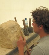 Each workstation (made of piled up breeze blocks I noticed!) was clearly labeled, and this is Liebert Benjamin carefully measuring his work. At the end of the afternoon I returned and it was absolutely fascinating to see how the works had progressed.)