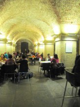 Then it's through the most interesting shop and box office (the church holds the most amazing concerts - often by candle light, which are well worth attending) and straight on into the crypt of the church. This is packed with tables and chairs with a serving hatch at the far end. (I just love looking up at the intricate brickwork in the curved ceiling here!)