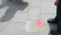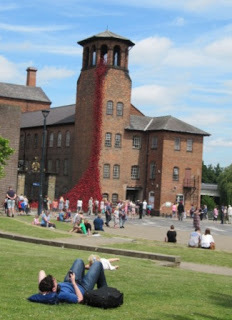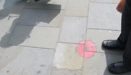 However, as soon as I arrived at the bus station I realised that this experience was going to be different, for not only was there a welcoming poster, but poppies painted onto the pavement directing visitors to the Silk Mill - a less than 5 minute walk away! Of course this town's response may have been because the sculpture, and originator of the idea, Paul Cummins comes from Derby.