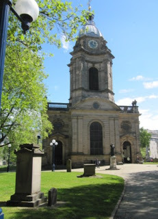 This building was pointed out to us as I travelled on the Big Bus Tour of the lovely city of Birmingham. Unlike say York or Lincoln, where their cathedrals dominate the skyline and can be seen for miles, this building is in the heart of the city, yet surrounded by a lovely green space. It is the third smallest Cathedral in the UK. Of course, I couldn't wait to walk back and take a better look!