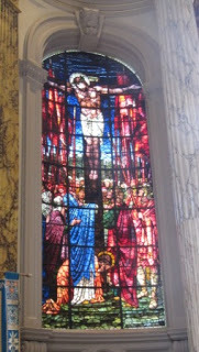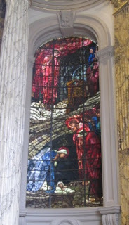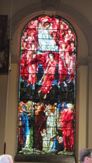 For me the big attraction was the Edward Burne-Jones windows. He was born nearby, and baptised here. There are three of his windows above the altar, and whilst the middle one is clear to view, the other two are much harder to see and really appreciate.At the other end of the Cathedral, is the west window, which is also by Burne --Jones and is dedicated in memory of Bishop Bowlby in 1897