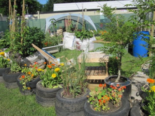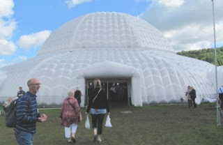 I was particularly impressed with the stall arranged by Rhubarb Farm (for more about this interesting place just see my previous blog. This section was called 'Hard Times' and showed what could be produced even when there was little money to spare. The containers were everything from recycled bags, to an old toilet and bath, and the greenhouse was made of glass bottles, with tyres being used as containers.Of course I was particularly interested to see what was inside this amazing, and dominant structure, which replicated Paxton's Great Conservatory. It was dedicated to the work of this amazing man, and boards told of how, in December 1843 Queen Victoria and Prince Albert had visited Chatsworth, and in the evening they had been driven through the grounds. 12,000 lamps were lit to illuminate the garden, while the National Anthem played, and they drove in their carriage, right through this amazing structure.