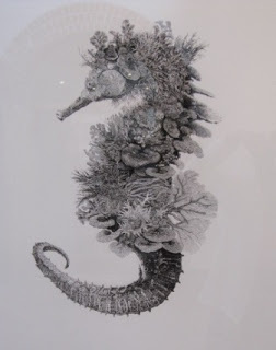 When I first walked in and saw black and white drawing that are so fine that a magnifying glass had been provided by each one, I was a little unsure. Initially they look so strange and unfamiliar. Just the outline was recognisable - for example this humpback whale.