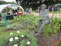 Then it was time to cross over the water, using the amazingly decorated bridge. (At least this part would have been undamaged by the appalling weather all this week!).On the far side were the Show Gardens - always a star attraction. This was my favourite. It was created by Jackie Knight and entitled 'Just Add Water'. It celebrates the design elements that have proved popular with her clients and the planting has been selected to entice wildlife and to harmonise with the pink sandstone rocks. I was just surprised that it only got a Bronze Medal.