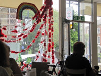 The whole atmosphere and the clear delight of the residents to this installation was infectious, and everyone was having such a good time. On hand were guides to hand out leaflets explaining that the poppies - entitled 'Weeping Window', were back in the city were many of them had been created. They were of course part of the installation Blood Swept Lands' which I was fortunate enough to see at the Tower of London - a really memorable event. (see previous blog)