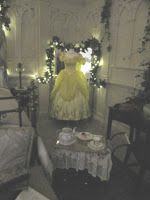 In every room banners explained the story - and it was good that the helpful guides were prepared to read these to a visually-impaired visitor who was touring at the same time as me. The East Drawing Room had become The Castle Rose Garden and the banner read:"Remembering his promise to Beauty, he bent down to pick a rose. Instantly, out of the rose garden, sprang a horrible beast, wearing splendid clothes. Two bloodshot eyes, gleaming angrily, glared at him and a deep, terrifying voice growled: "Ungrateful man! I gave you shelter, you ate at my table and slept in my own bed, but now all the thanks I get is the theft of my favourite flowers! I shall put you to death for this slight!". Trembling with fear, the merchant fell on his knees before the Beast."