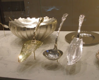 I love the exhibitions at the Harley Gallery, and this one 'Made for the Table' certainly didn't disappoint. In the lower gallery the most fabulous collection of silver cutlery from the Goldsmith Company Collection was on show, and very lovely it was too. On the wall was this fascinating video by Rebecca De Quin.