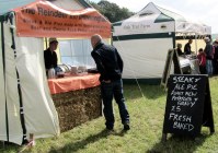 Then there were two competitions, for best bitch and best dog, with the animals first being checked over by a vet.This was followed by a lunch break, and I'd taken a picnic as food facilities at these events can be extremely varied. To my considerable delight I found there was a large marquee, full of trestle tables, and serving an impressive array of hot food. This is roast pork, apple sauce and yorkshire pud - with help yourself veggies! It certainly beat sandwiches any day!