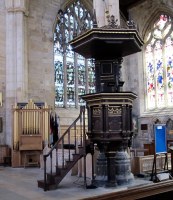 Everywhere you look there are delights. This is the pulpit which dates from 1612, and was used by John Cotton, then Vicar of Boston. It is said that his sermons lasted several hours. It has ornate carvings in the style of the Prince of Wales feathers.